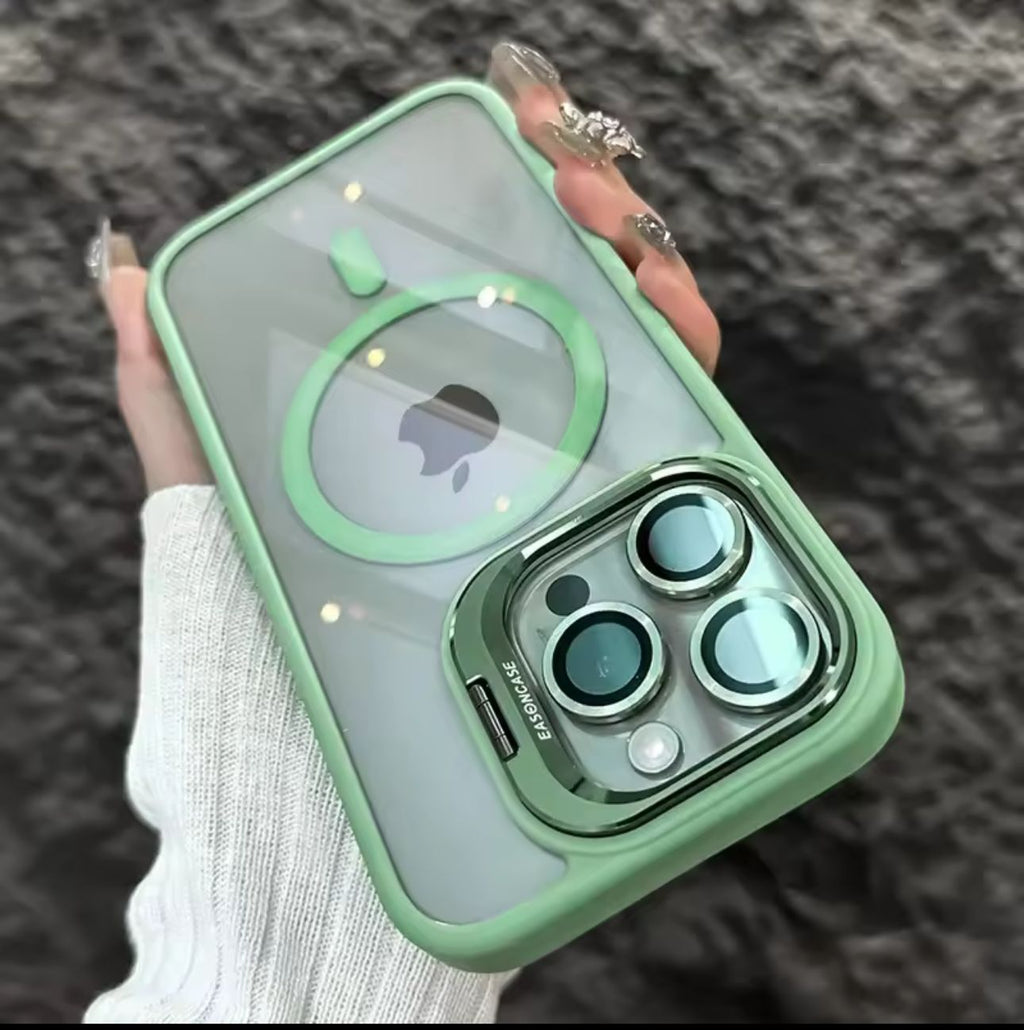 CAPINHA CASE AUTO GLASS MAGSAFE COM LENTES PROTETORAS E SUPORTE OCULTO